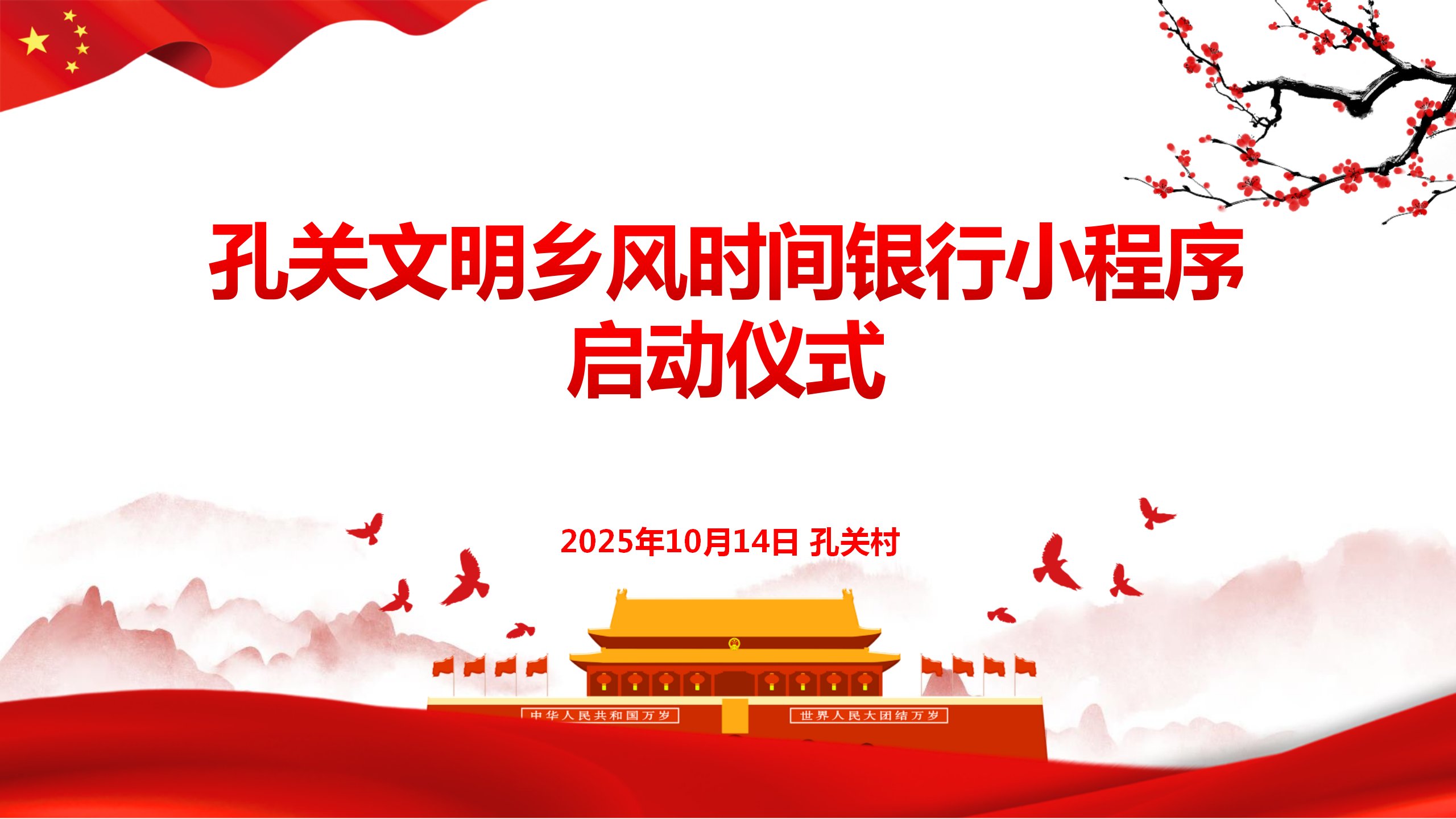 2025年10月14日下午,鄂州市华容区段店镇孔关村新时代文明实践站“文明乡风时间银行”小程序启动仪式在村委会隆重举行。湖北省人大常委会委员、省科教文卫委员会副主任、省炎黄文化研究会会长喻立平出席并致辞,湖北省炎黄文化研究会秘书长胡秋春,湖北省明邦国学研究院副院长叶大宝,湖北省炎帝神农文化基金会副秘书长吕光亮,湖北省炎黄文化研究会外联部主任陈书剑,湖北省炎帝神农文化基金会办公室主任张蕾蕾,以及孔关村村委会干部、文明乡风工作队和村民代表共同见证了这一重要时刻。